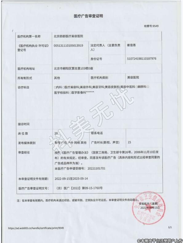 發(fā)證機(jī)關(guān):北京市朝陽(yáng)區(qū)衛(wèi)生和計(jì)劃生育委員會(huì)