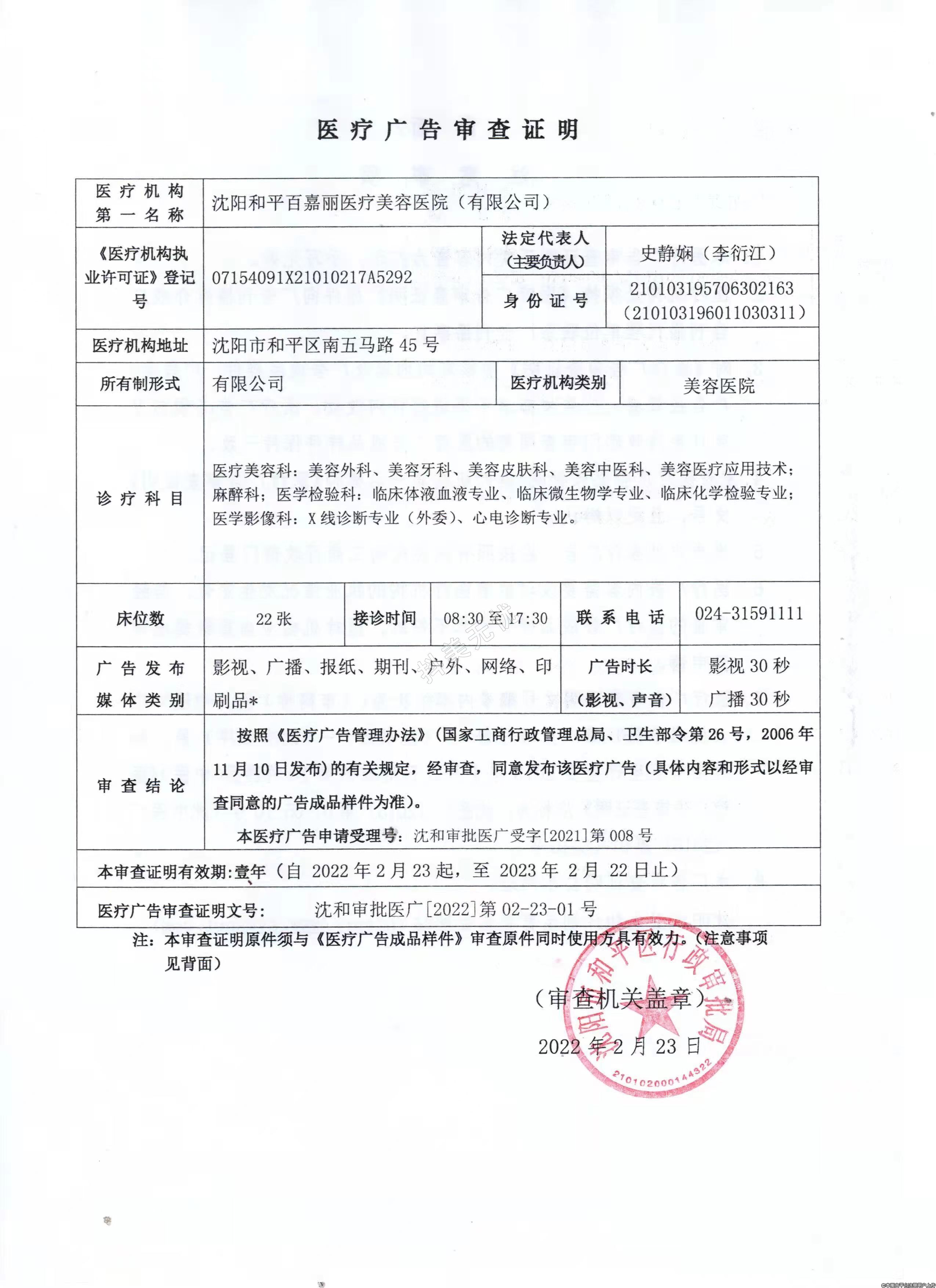 機構(gòu)名稱:沈陽和平百嘉麗醫(yī)療美容醫(yī)院(有限公司)