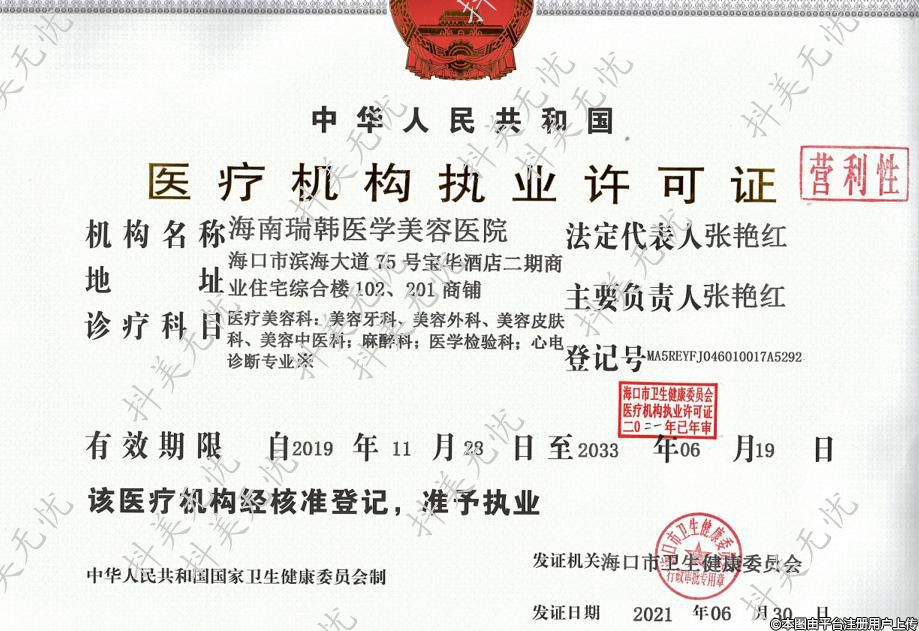 機構(gòu)名稱:海南瑞韓醫(yī)學(xué)美容醫(yī)院