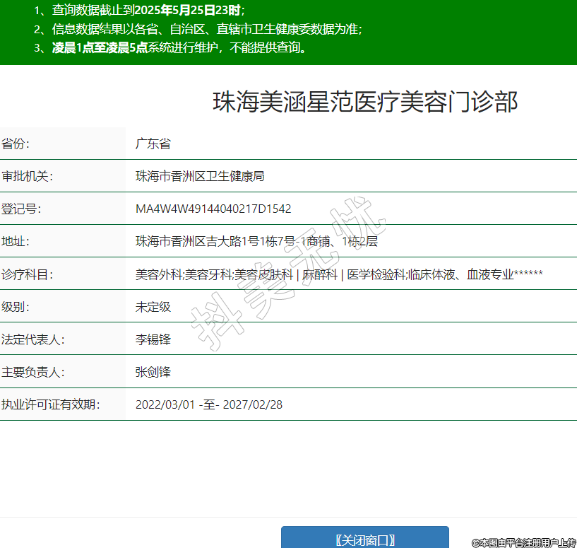 省份:廣東省審批機(jī)關(guān):珠海市香洲區(qū)衛(wèi)生健康局登記號:MA4W4W49144040217D1542地址:珠海市香洲區(qū)吉大路1號1棟7號-1商鋪、1棟2層診療科目:美容外科;美容牙科;美容皮膚科 | 麻醉科 | 醫(yī)學(xué)檢驗(yàn)科;臨床體液、血液專業(yè)******級別:未定級法定代表人:李錫鋒主要負(fù)責(zé)人:張劍鋒執(zhí)業(yè)許可證有效期:2022/03/01 -至- 2027/02/28 -