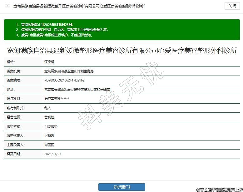 寬甸滿族自治縣遲新媛微整形醫(yī)療美容診所有限公司心愛醫(yī)療美容整形外科診所