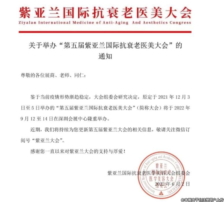 關(guān)于舉辦“第五屆紫亞蘭國際抗衰老醫(yī)美大會”的通知