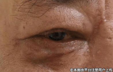 表現(xiàn):眼周無死角的動態(tài)、靜態(tài)皺紋,嚴(yán)重的眶內(nèi)凹陷,上瞼皮膚松垂導(dǎo)致的三角眼,眼袋膨出,淚溝凹陷,下瞼皮膚松弛等