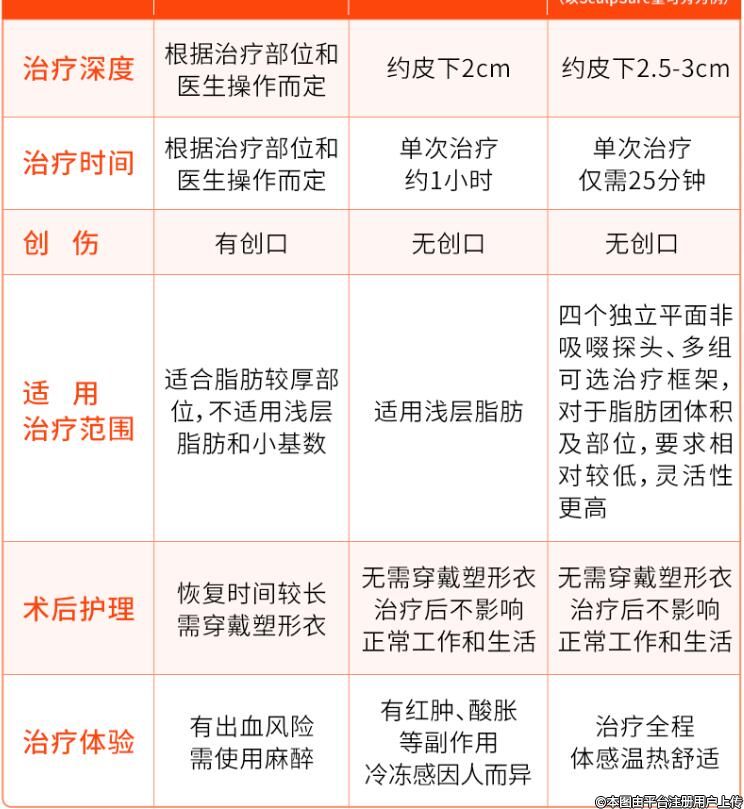 但目前制霸第一梯隊的還是吸脂手術(shù)、冷凍溶脂、激光熱溶脂三大技術(shù)。