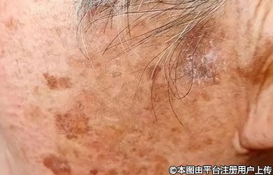 老年斑好發(fā)于中老年人,主要與日曬及皮膚光老化有關(guān),表現(xiàn)為面部、手背、雙前臂黃褐色斑片,境界清楚,部分可突出于皮膚表面。