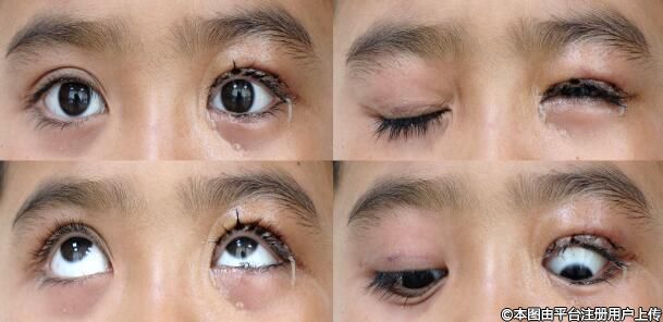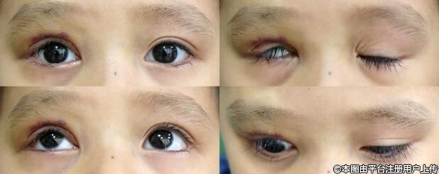 出生后出現(xiàn)單眼或雙眼睜不大,眼睛表現(xiàn)為黑眼珠露出不足,甚至完全不能睜眼,單側(cè)發(fā)病者表現(xiàn)“大小眼”,雙側(cè)下垂常有仰頭、抬眉、皺額的特殊姿勢。先天性上瞼下垂影響外觀,嚴(yán)重者可影響視力發(fā)育形成弱視,不利于患兒心理發(fā)育。程度分級:輕度(上瞼遮蓋瞳孔1/3);中度(上瞼遮蓋瞳孔1/2);重度(上瞼遮蓋瞳孔2/3)。