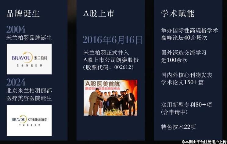 米蘭柏羽品牌起源于2004年,2016年6月16日,米蘭柏羽正式并入A股上市公司朗姿股份(股票代碼:002612)成為首家具備A股上市背景的醫(yī)美品牌。