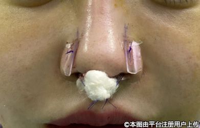 【3】鼻翼緣術(shù)后,會(huì)在鼻孔鼻翼處固定透明塑形板,作用是加強(qiáng)皮瓣的固定,防止創(chuàng)面內(nèi)積液,透明塑形板便于觀察皮瓣顏色。