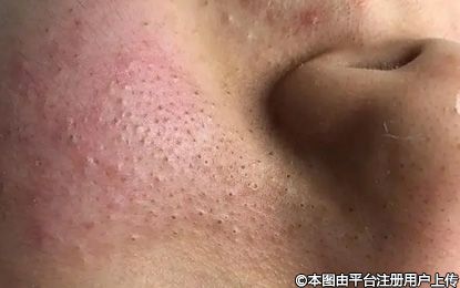 6、顯而易見的粗大毛孔(明顯且擴大的毛孔,以及突出毛孔的角栓,如同草莓狀)。