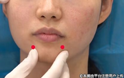 然后甚至在法令紋的下段,明顯的凹陷,這也會(huì)導(dǎo)致我們的口角囊袋更重,木偶紋也看起來(lái)更明顯。