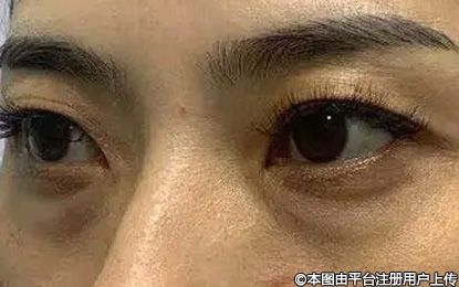 單純性下瞼及外眥皮膚松弛,但無眶膈松弛,所以無眶隔脂肪突出,眼周伴有細(xì)小皺紋出現(xiàn)。