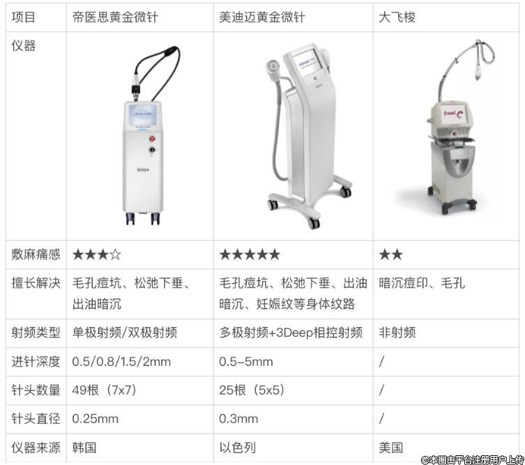 雖然黃金微針的痛感都是訂書機(jī)扎臉,但這次打【帝醫(yī)思】的痛感比之前稍輕,可能是因?yàn)獒橆^更細(xì)一些。我把【帝醫(yī)思】【美迪邁】【大飛梭】這幾個(gè)毛孔克星項(xiàng)目的特點(diǎn)做成了表格放在一張圖,方便大家對比選擇。