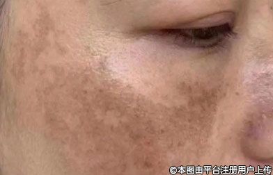 邊緣清晰、大小不等的黃褐色或深褐色斑片,多見(jiàn)于中青年女性面部,對(duì)稱(chēng)性分布于易接受日光照射部位。常呈蝴蝶形分布于顴部及頰部,也可發(fā)生于前額、鼻、口周等部位。