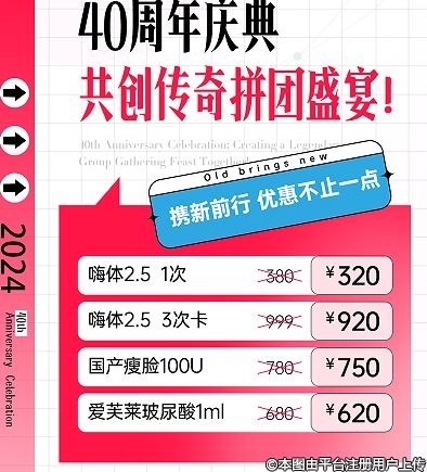昆明吳氏嘉美40周年慶美容福利重磅來襲,上門面診禮,同行拼團(tuán)禮,儲(chǔ)值加贈(zèng)禮,眾多美容福利,送給大家,千萬不要錯(cuò)過哦。