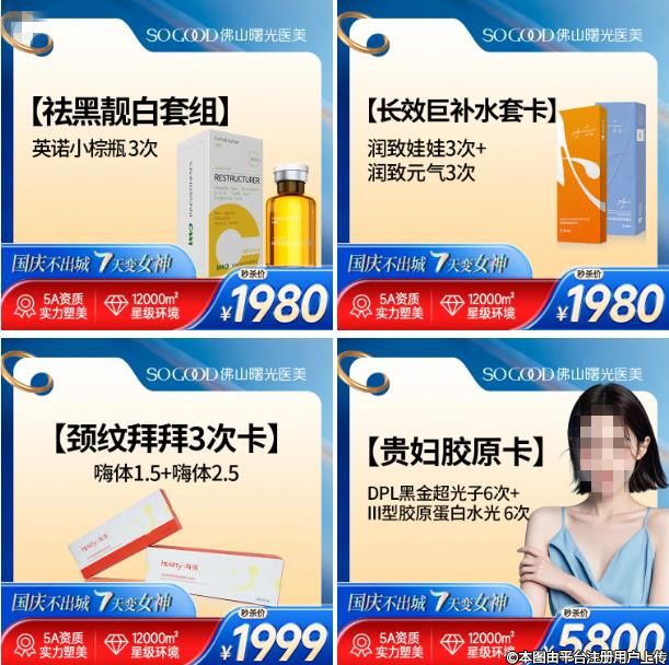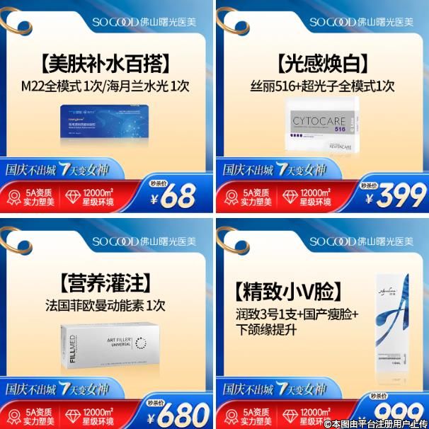 佛山曙光金子整形八大美膚組合卡低至68起,國(guó)慶限時(shí)福利來(lái)啦