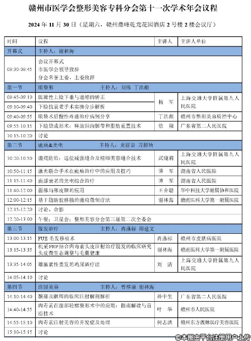 【2024江西省贛州市醫(yī)學(xué)會(huì)整形美容分會(huì)第十一次學(xué)術(shù)年會(huì)】11月30日即將盛啟!