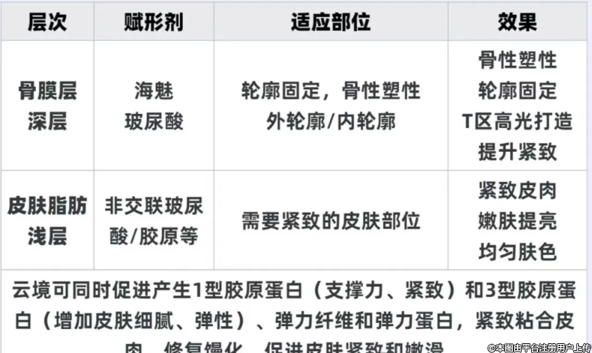 成分:CaHA微球+玻尿酸(1m1/支)25um的活性多孔羥基磷灰石生物陶瓷前期HA物理占位,后期CaHA刺激膠原能同時(shí)促進(jìn)I型和亞型膠原蛋白再生