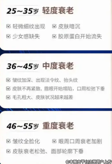 各個(gè)年齡都有不同的衰老表現(xiàn)!
