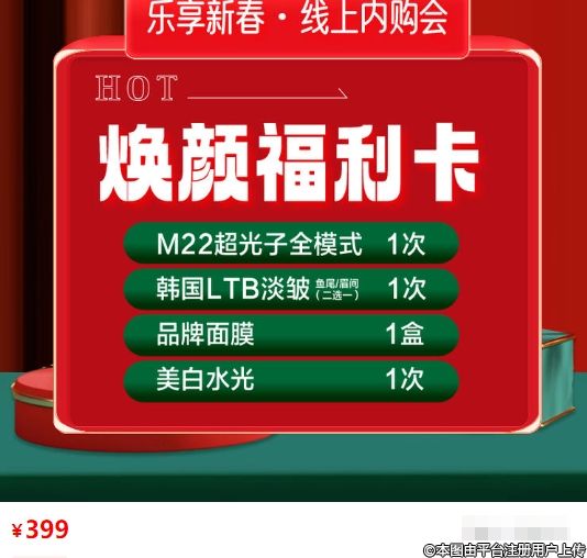 單部位淡紋+光子嫩膚+面膜+美bai水光