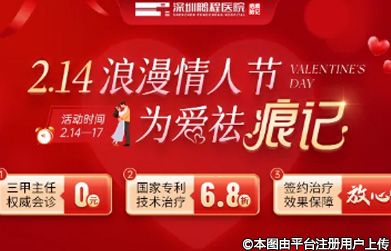 我院舉行情人節(jié)祛疤除記活動,為大家送上一份節(jié)日的祝福,以6.8折福利+三甲主任和國家專利技術(shù)等加持,讓大家祛得起疤痕胎記,走出自卑打破歧視,贏回自信,收獲一份專屬自己的愛情。