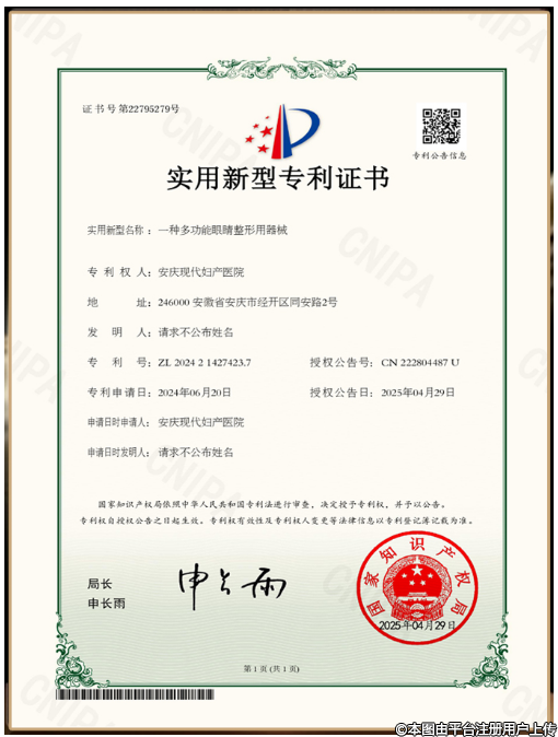 近日,安慶現(xiàn)代婦產(chǎn)醫(yī)院醫(yī)學美容科9°生態(tài)美眼技術(shù)獲得國家專利認證,為本地眼部整形領(lǐng)域帶來新突破,為愛美人士提供了更安全、更自然的雙眼皮整形選擇。
