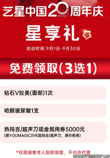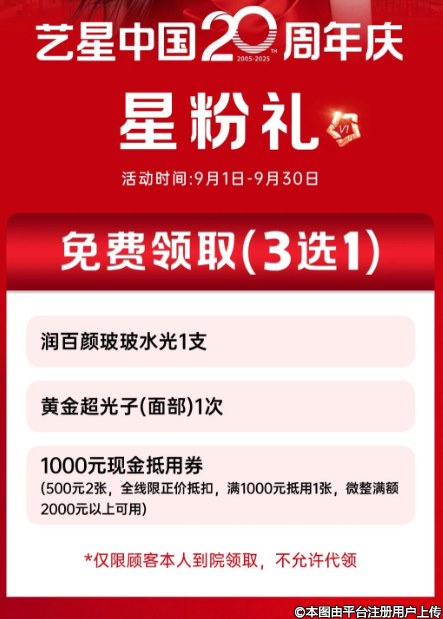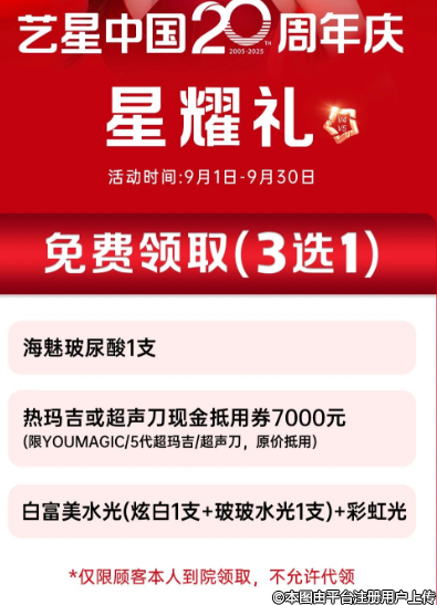 超級(jí)星院活動(dòng)期間,即9月1日--30日,溫州藝星卡級(jí)客戶(hù)來(lái)院即可免費(fèi)獲取超級(jí)星粉上門(mén)禮。